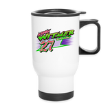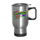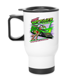 We're an on-the-go society. We eat on-the-go, we work on-the-go, we grab and we run. This travel mug is the ideal companion for the "on-the-go" in you. Good for hot or cold beverages, this mug will keep up with the breakneck pace of your day.- Made of stainless steel, rubber and plastic | Mug volume: 14 fl oz