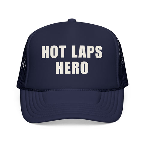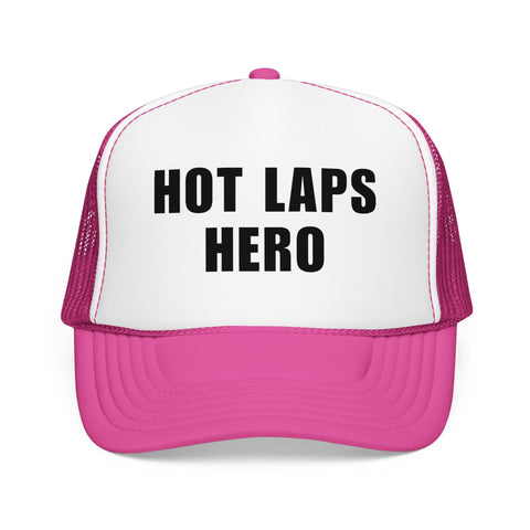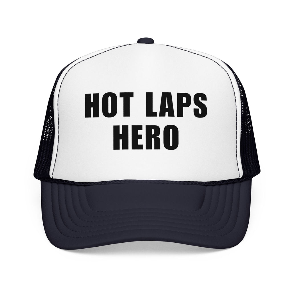 Fastest car on the track… at least until the heat race starts. The Hot Laps Hero trucker hat is for every driver who lays down a blazing lap in practice and suddenly feels like the one to beat. Classic trucker style with breathable mesh keeps you cool while you explain how the track “changed a lot” after hot laps.