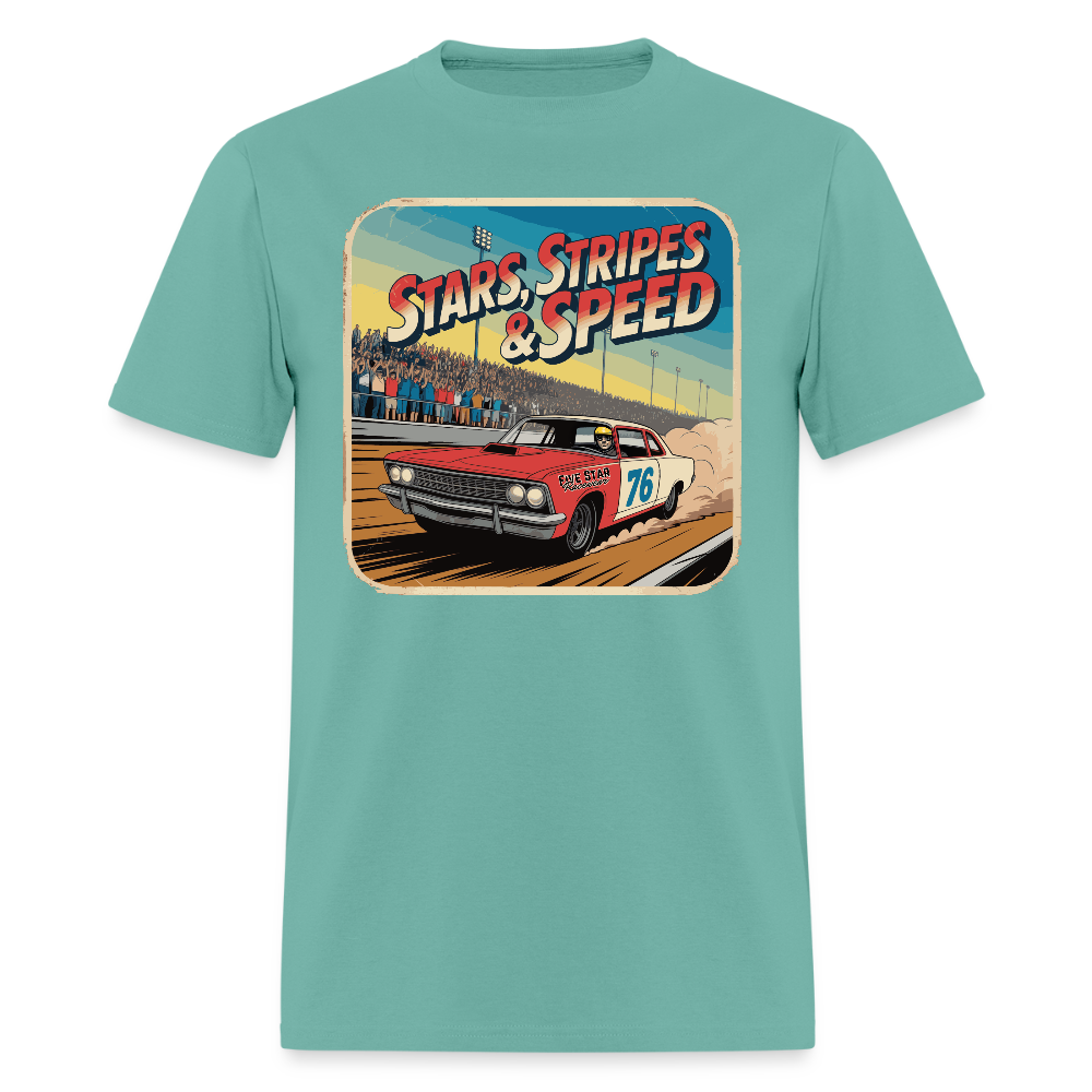 It doesn’t get more American than this—loud engines, slideways in the dirt, and the crowd on their feet. This throwback design from our Stars, Stripes & Speed summer collection brings the heat with just enough dust to make your eyes water.